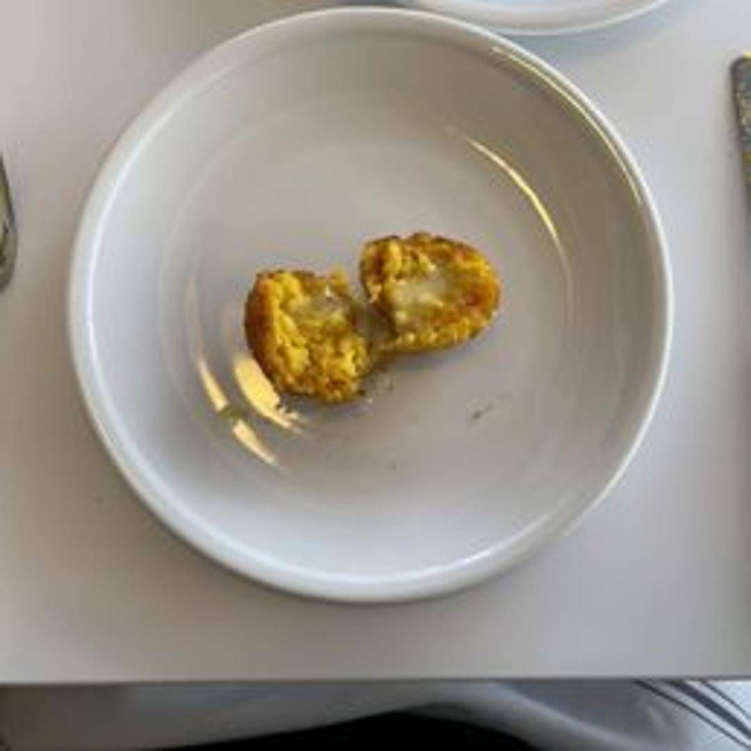 Fried risotto balls, often filled with meat ragu, mozzarella cheese, and peas, served with a dipping sauce.