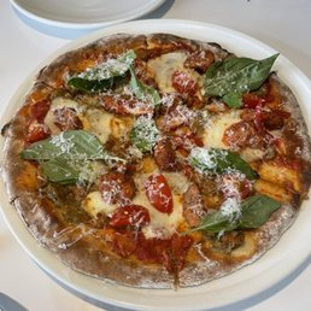 Pizza topped with house-made meatballs, tomato sauce, mozzarella cheese, and other traditional pizza toppings.
