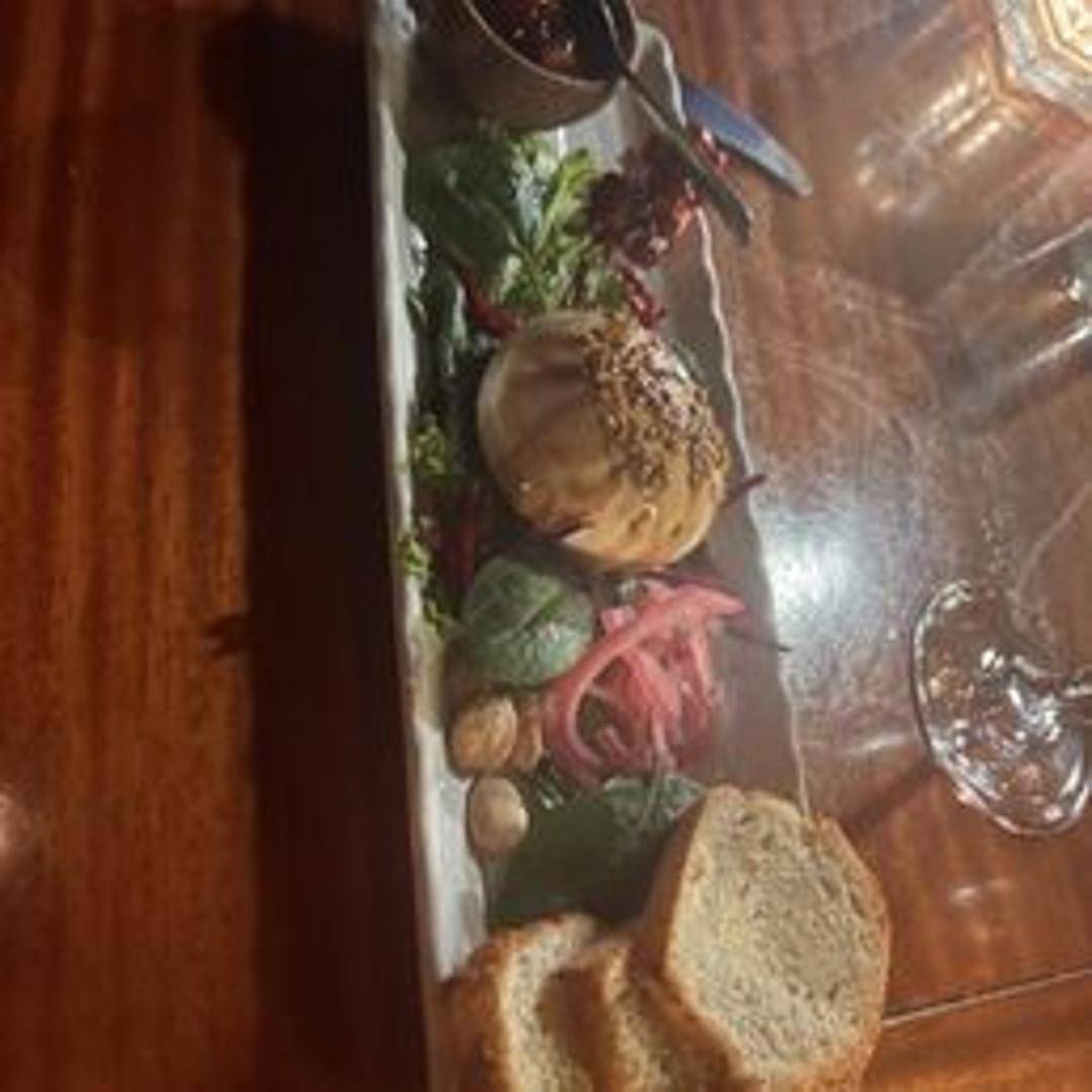 Creamy burrata cheese served with a drizzle of olive oil and balsamic glaze, accompanied by toasted bread.