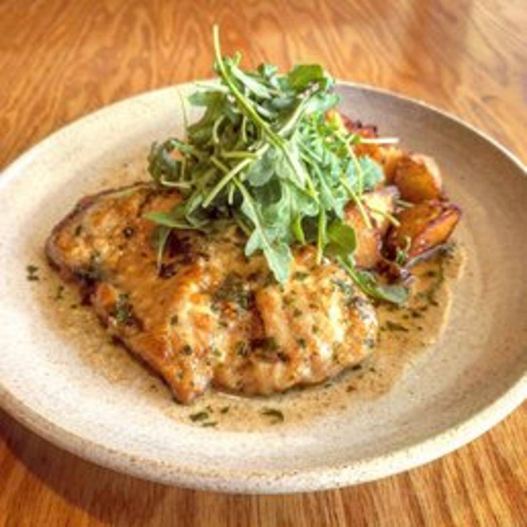 Pork loin, topped with prosciutto and sage, pan-fried to golden brown, and drizzled with a light wine sauce.