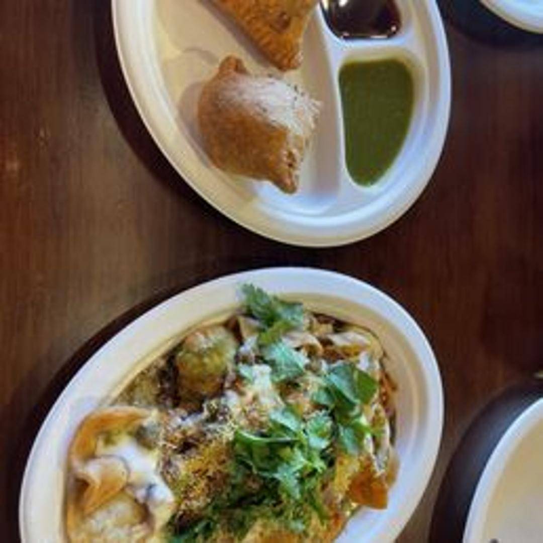 Crispy, deep-fried pastry filled with a savory mixture of spiced potatoes and peas. A popular Indian snack, served with chutney.