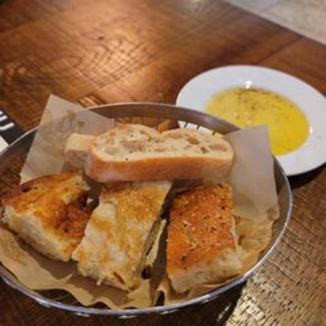 Assortment of freshly baked Italian breads served with olive oil and balsamic vinegar for dipping.