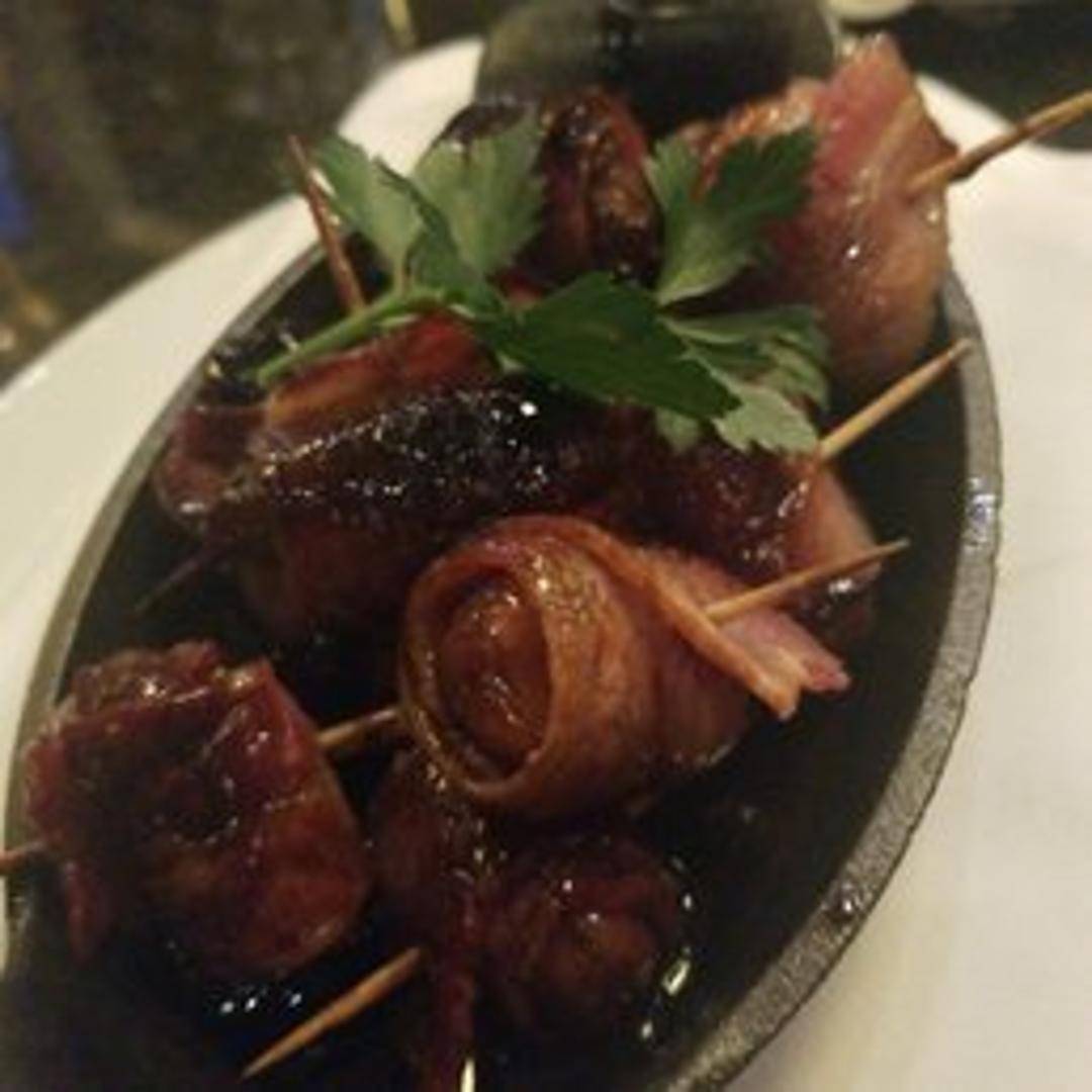 Medjool dates stuffed with gorgonzola cheese and wrapped in crispy applewood-smoked bacon. Served with a balsamic glaze.