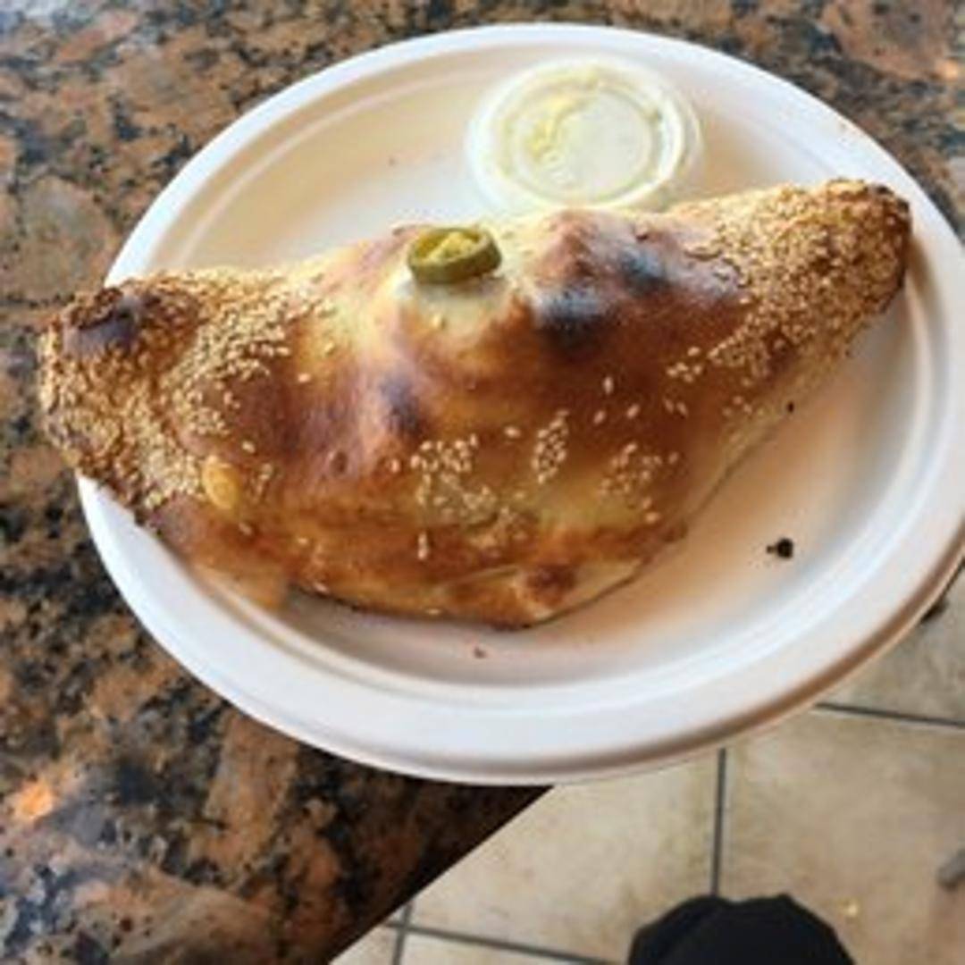 A savory pastry filled with a flavorful mixture of chickpeas, onions, and spices, baked to a golden brown.