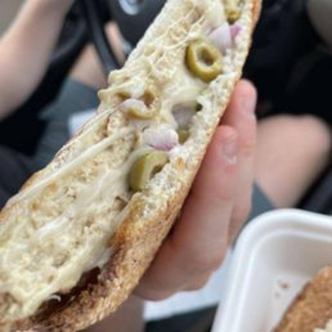 Classic tuna salad, made with mayonnaise, celery, and seasonings, topped with melted cheese on toasted bread. Served warm.