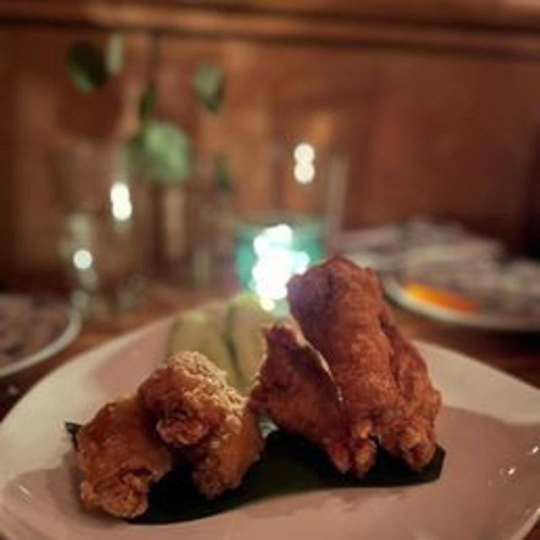 Succulent chicken wings, perfectly fried to a golden crisp, delivering a burst of savory flavor with every bite. These wings are artfully seasoned, reflecting the rich culinary traditions of Laos, offering a delightful appetizer or snack.