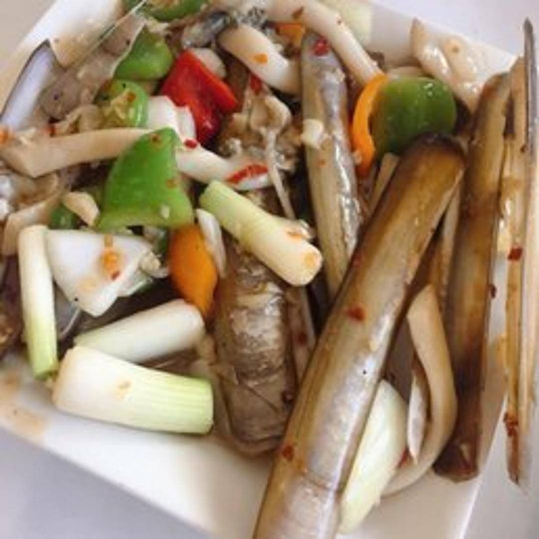 Exquisite razor clams (Oc Mong Tay) prepared to perfection, offering a delightful culinary experience. These elongated shellfish are expertly sautéed, often with aromatic garlic, rich butter, or a zesty tamarind sauce, enhancing their natural sweetness and delicate brininess. Each clam boasts a wonderfully chewy yet tender texture, absorbing the rich flavors of the accompanying sauce. A popular appetizer or shared dish, it's typically served in its shell, inviting diners to savor every flavorful bite.