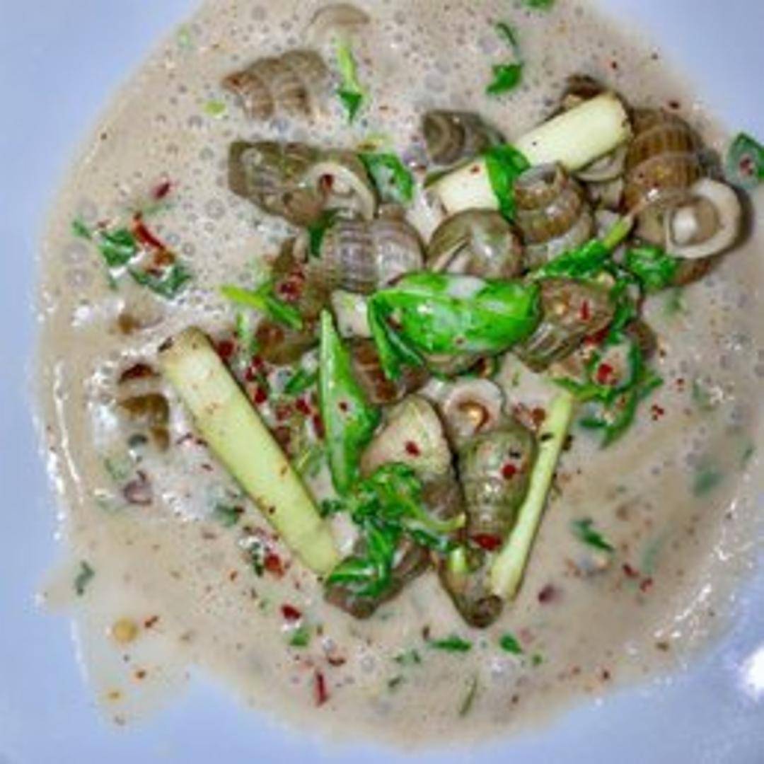 An exquisite and unique take on escargot, featuring premium snails prepared in a luscious and aromatic coconut sauce. The 'swirly' aspect may refer to the captivating spiral of the snail shells or the rich, velvety texture of the coconut broth. Each tender piece of escargot is infused with the creamy sweetness of coconut milk and fragrant spices, delivering a refined and memorable seafood experience.