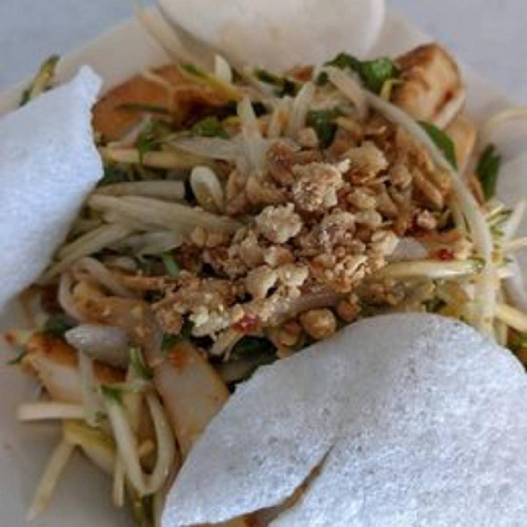 A vibrant and refreshing Vietnamese salad bursting with tangy and sweet flavors. Made with finely shredded unripe green mangoes, this crisp salad is typically tossed with fresh herbs, chili, and crushed peanuts, all coated in a zesty, savory, and slightly sweet dressing. It offers a delightful crunch and a perfect balance of invigorating flavors.