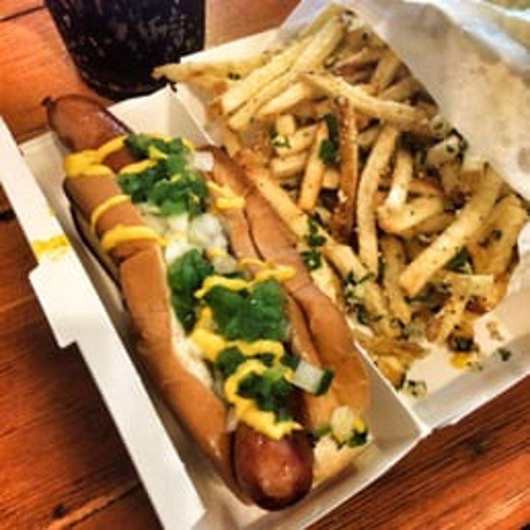A classic all-beef hot dog served on a bun with your choice of condiments.