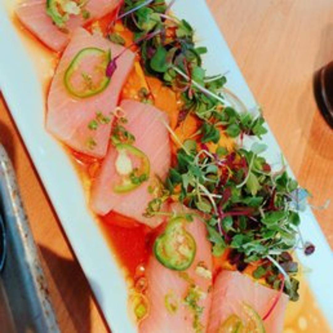 Experience the delicate artistry of our Hamachi Carpaccio, featuring thinly sliced, pristine yellowtail (Hamachi) laid out elegantly. This visually stunning and flavorful appetizer highlights the fish's natural buttery texture and rich, clean taste, often enhanced with a light citrus dressing, a hint of spice, and fresh herbs to create a refreshing and sophisticated start to your meal.