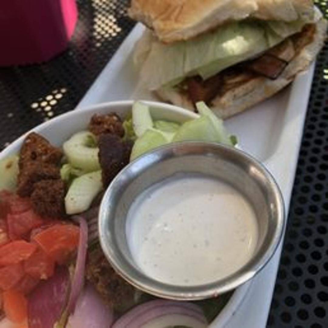 Crispy fried chicken breast, lettuce, guacamole, bacon, tomato, served on a toasted bun with your choice of side.
