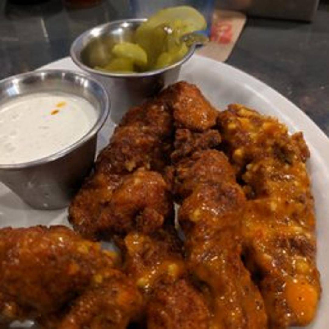 Tender, bite-sized pieces of boneless chicken, breaded and fried to a golden crisp. Tossed in your choice of signature sauce: Buffalo, BBQ, Sweet Chili, or Garlic Parmesan. Served with your choice of ranch or blue cheese dressing and celery sticks.