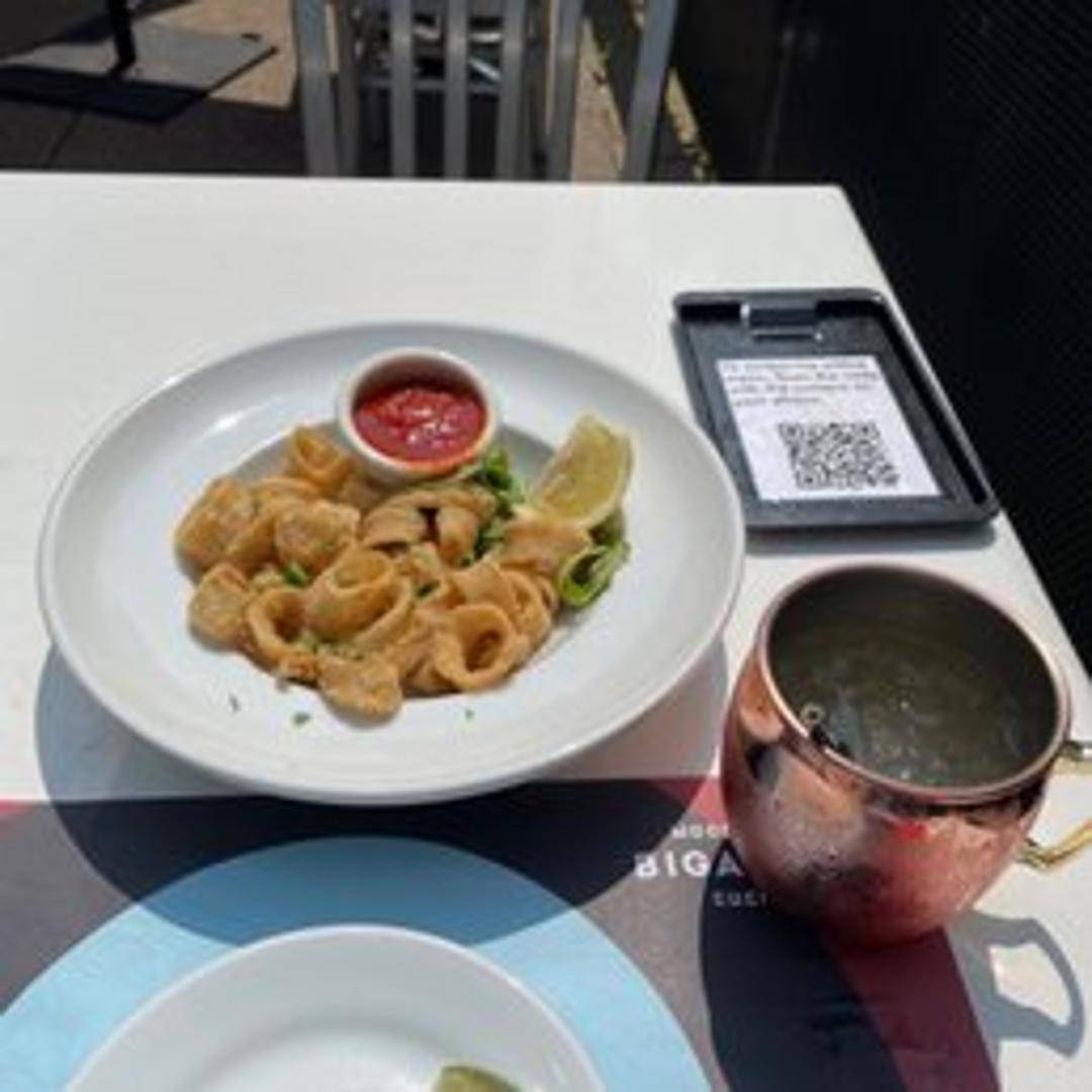 Lightly battered and fried calamari, served with marinara sauce and lemon wedges.