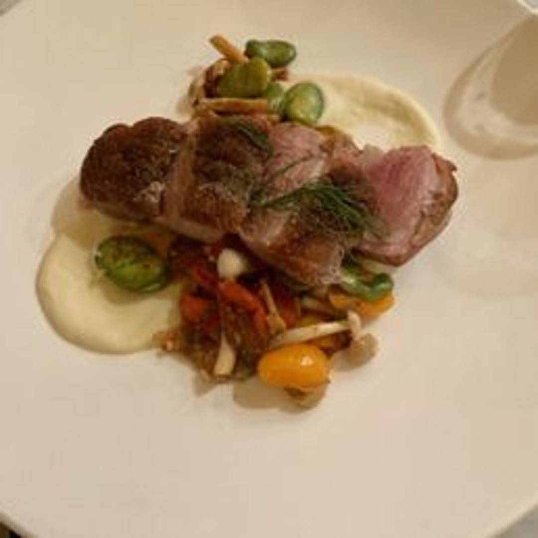 Pan-seared duck breast with crispy skin and a succulent, tender interior. Served with seasonal fruit compote and a rich, savory reduction sauce.