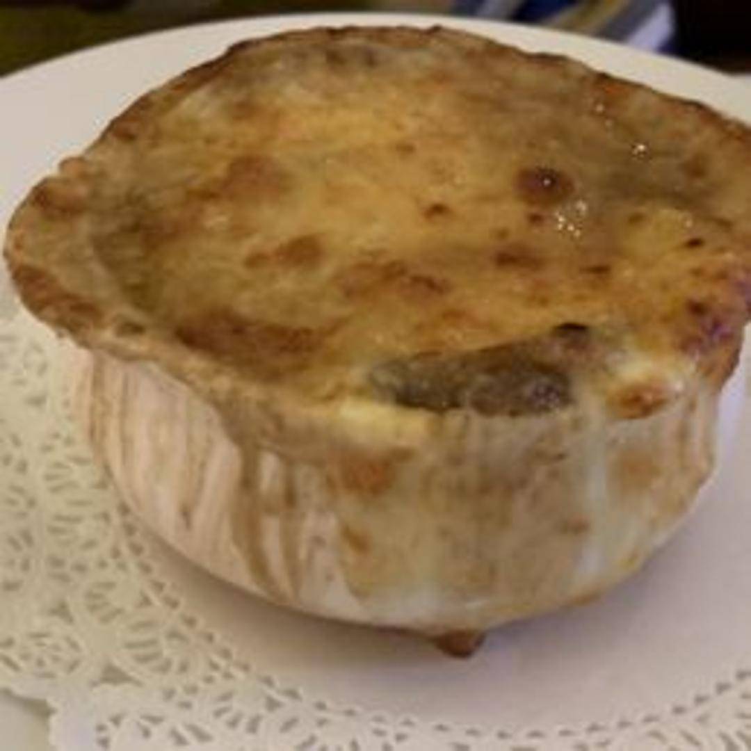 A classic French onion soup, deeply savory and comforting. This rendition, inspired by the bustling Parisian market Les Halles, features sweet, caramelized onions simmered in a rich, robust beef broth. It is traditionally finished with a generous, crusty crouton, expertly broiled until golden, and crowned with a decadent layer of bubbling, melted Gruyère cheese, offering a perfect blend of textures and flavors.