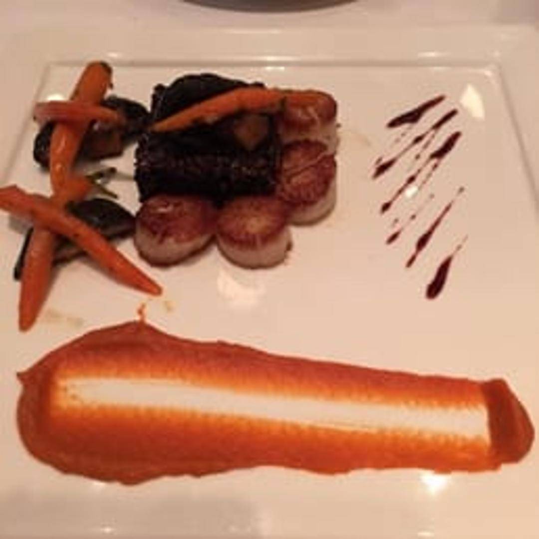 Plump and sweet sea scallops, expertly seared to a golden perfection, showcasing their delicate texture and natural sweetness, prepared in the refined 'La Cagouille' style, known for highlighting the essence of fresh seafood with elegant and nuanced flavors.