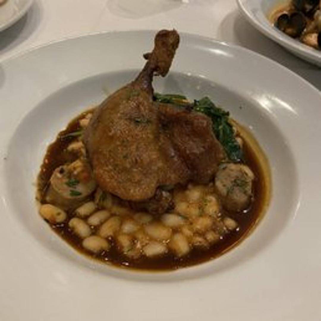 A traditional French delicacy, this dish features a duck leg that has been meticulously cured and then slow-cooked in its own rendered fat until exceptionally tender. The skin is then crisped to a golden-brown perfection, yielding a succulent, flavorful meat that effortlessly falls off the bone, offering a rich and deeply satisfying culinary experience.