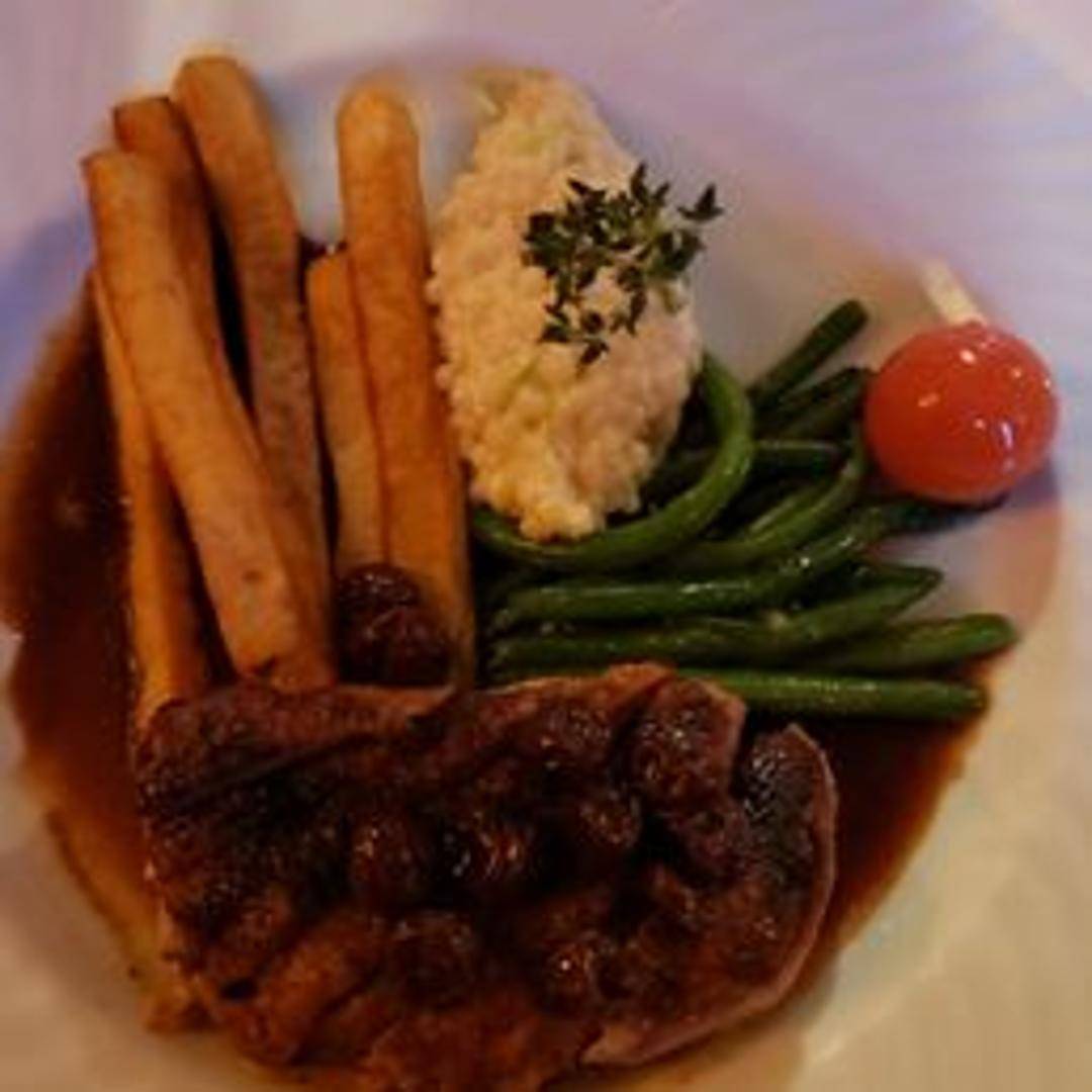 Pan-seared duck breast, boasting a delightfully crispy skin and tender, succulent meat. Finished with a delicate pan sauce, often cherry or orange reduction, and paired with complementary seasonal accompaniments.