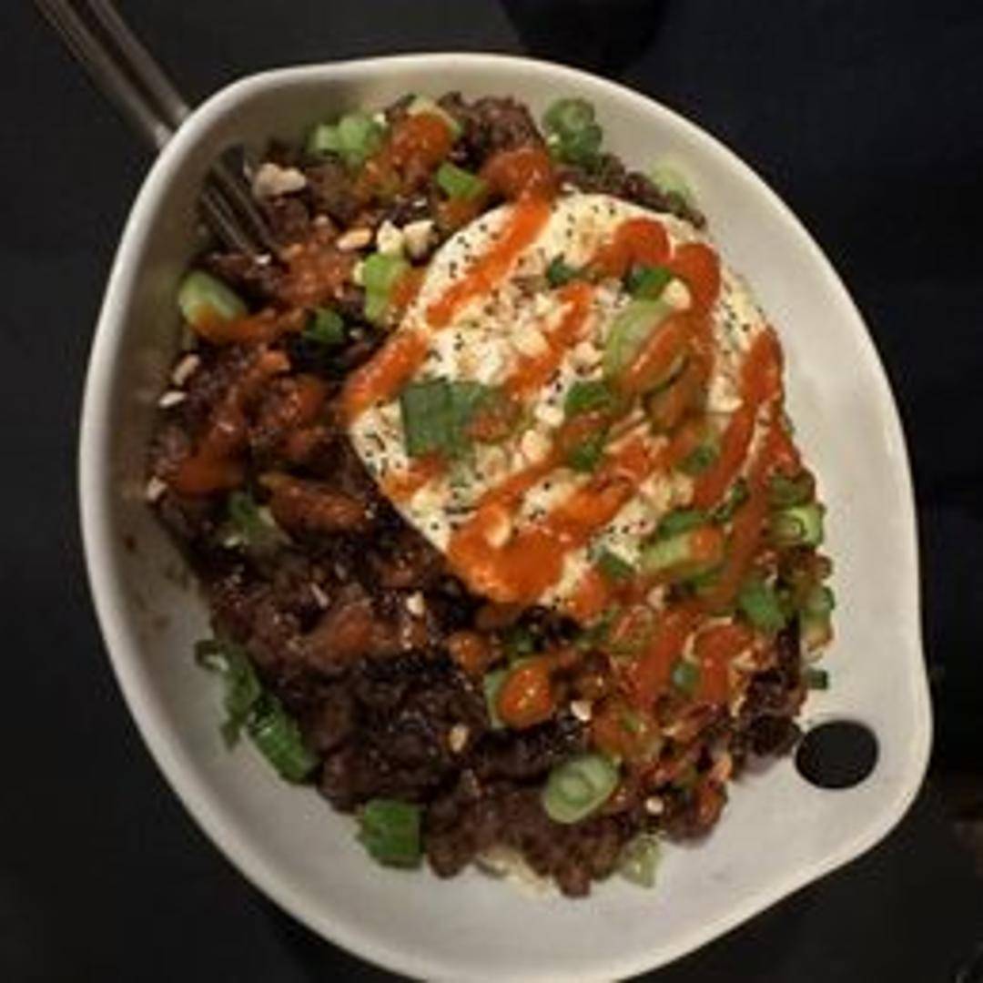 Glass noodles stir-fried with thinly sliced beef, colorful vegetables, and a sweet and savory soy-based sauce. Topped with sesame seeds.