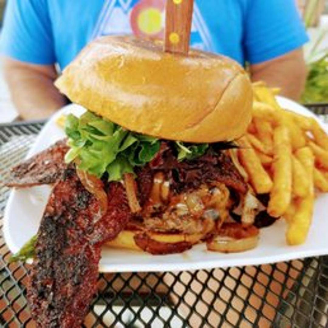 A juicy beef patty infused with Irish Porter, topped with caramelized onions, Irish cheddar cheese, lettuce, and tomato on a toasted bun.