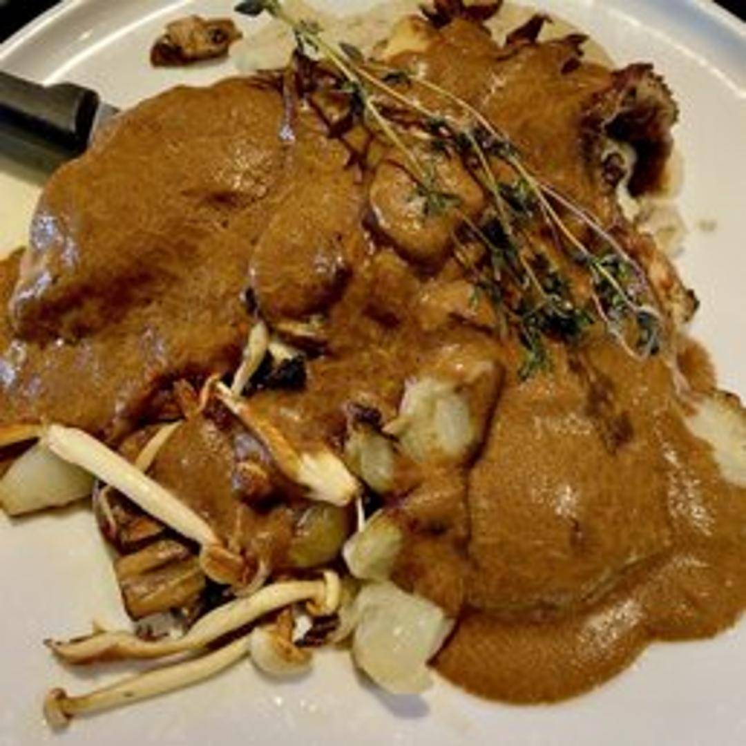 Tender pieces of chicken glazed in a sweet and savory bourbon sauce. Served with your choice of side.