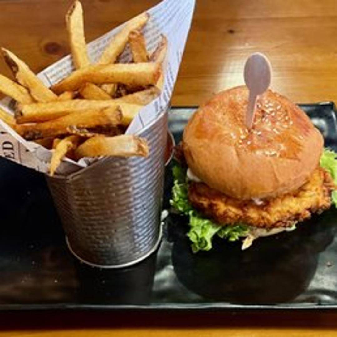 A hearty and flavorful rendition of the classic club sandwich, elevated with a distinctive Southern touch. This robust sandwich features tender, seasoned chicken, layered generously between slices of perfectly toasted bread. It's completed with crispy bacon, fresh lettuce, ripe tomato slices, and a creamy spread, creating a harmonious blend of textures and savory flavors that embody comforting, familiar tastes with a regional twist.