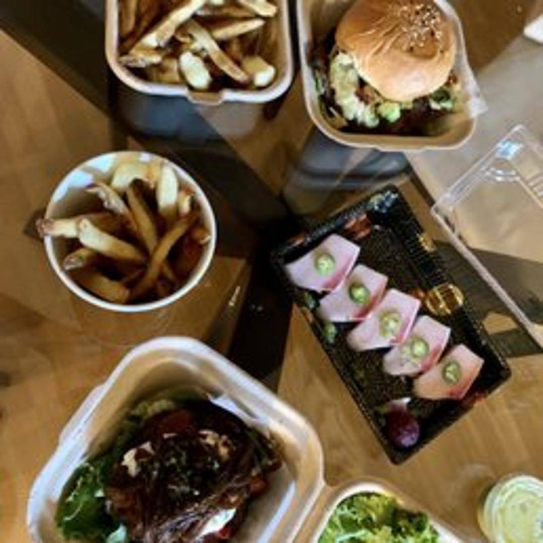 An adventurous and uniquely flavored gourmet burger featuring a juicy, perfectly cooked patty, generously topped with tangy goat cheese, a distinct nutty element (such as a crushed nut blend or a rich nutty sauce), and complementary fresh accompaniments, all served on a toasted artisan bun.