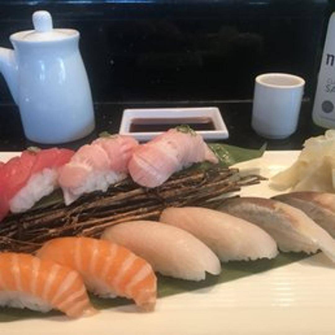 A specialty roll, ingredients vary, but will likely feature blue fin tuna, and other premium sushi ingredients.