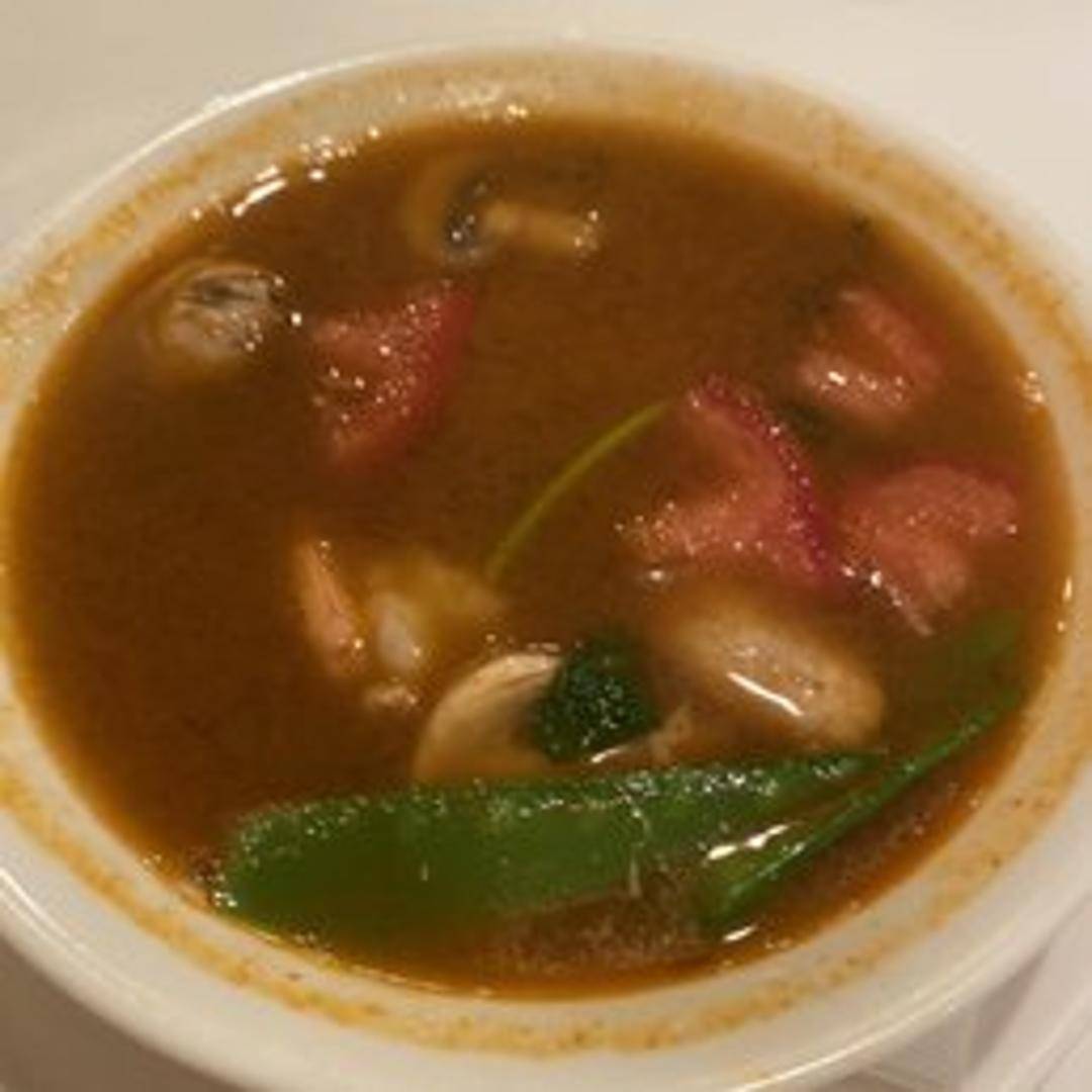 A comforting and aromatic Thai soup known for its harmonious balance of sweet, sour, and savory notes, often featuring a light broth infused with traditional herbs and spices, fresh vegetables, and your choice of protein.