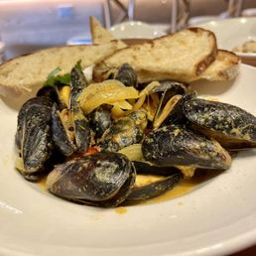 Fresh mussels steamed in a fragrant curry broth with coconut milk, herbs, and spices. Served with grilled bread for dipping.