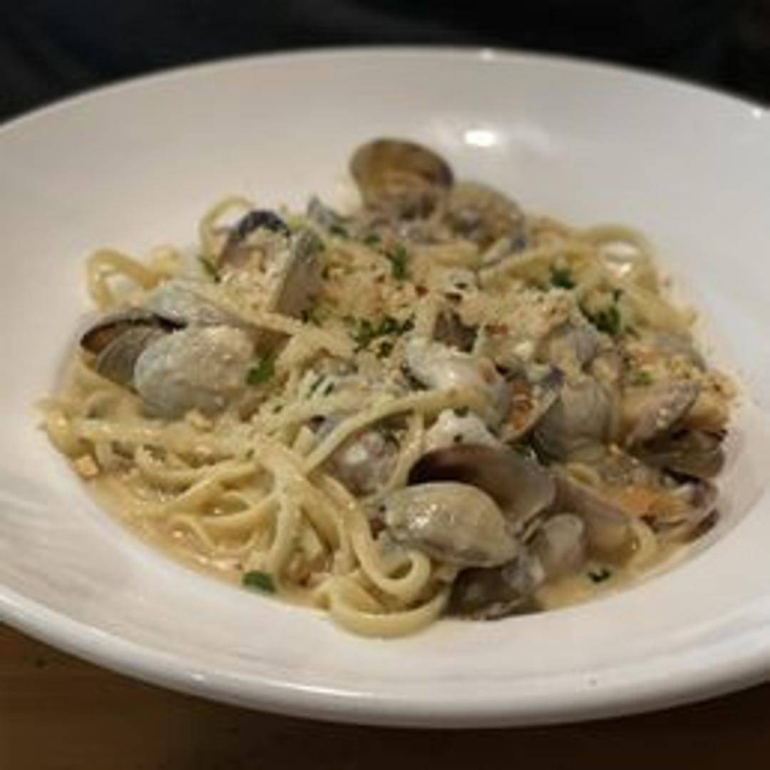 Linguine or other pasta tossed with fresh Manila clams in a white wine garlic sauce. A classic Italian-inspired seafood dish.