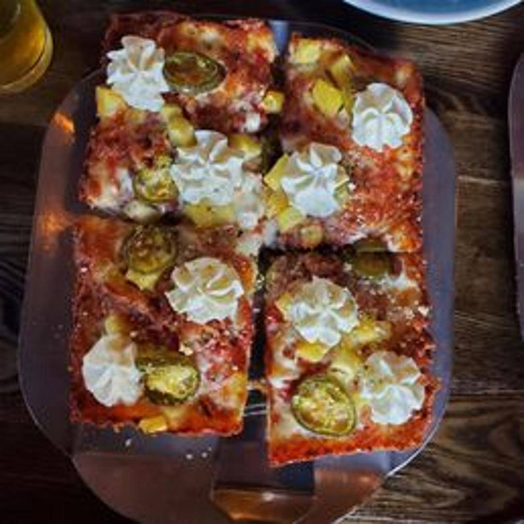 Experience Detroit-style pizza perfection at Blue Pan Pizza!