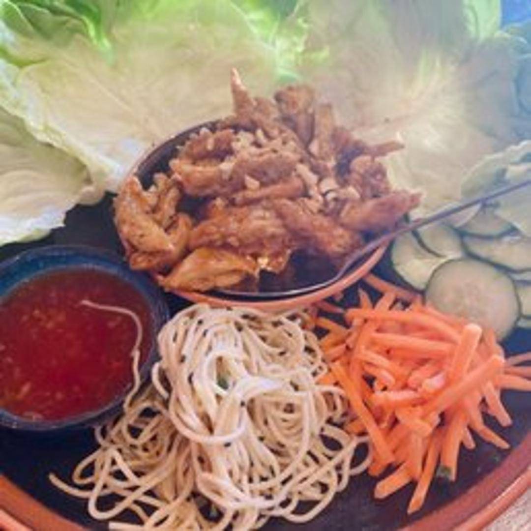 Choice of sautéed protein (chicken, tofu, or shrimp) with water chestnuts, mushrooms, carrots, and a savory sauce, served with crisp lettuce cups for wrapping.