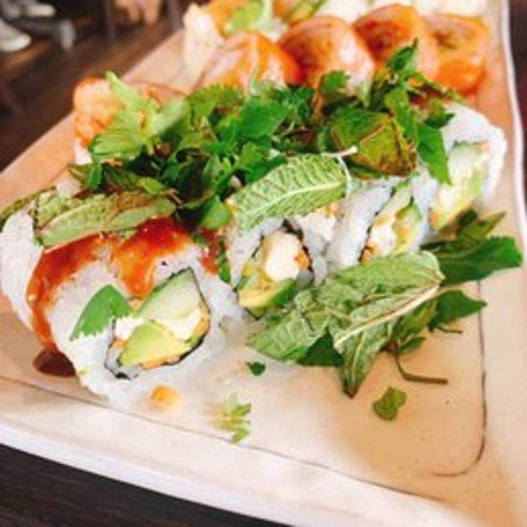 Coconut shrimp, avocado, cream cheese, sweet chili sauce.