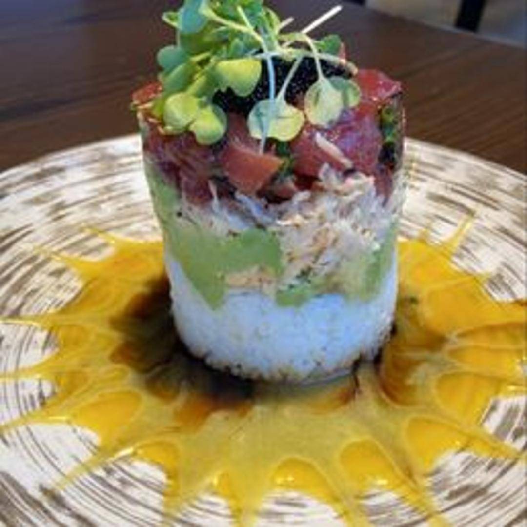 An impressive and flavorful appetizer, the Tuna Tower is an architectural masterpiece of fresh ingredients. It typically features layers of perfectly seasoned sushi rice, rich diced tuna, creamy avocado, and often a spicy or savory sauce, all stacked artfully. Finished with vibrant garnishes like masago, scallions, or microgreens, it's a visually stunning and delicious start to any meal.