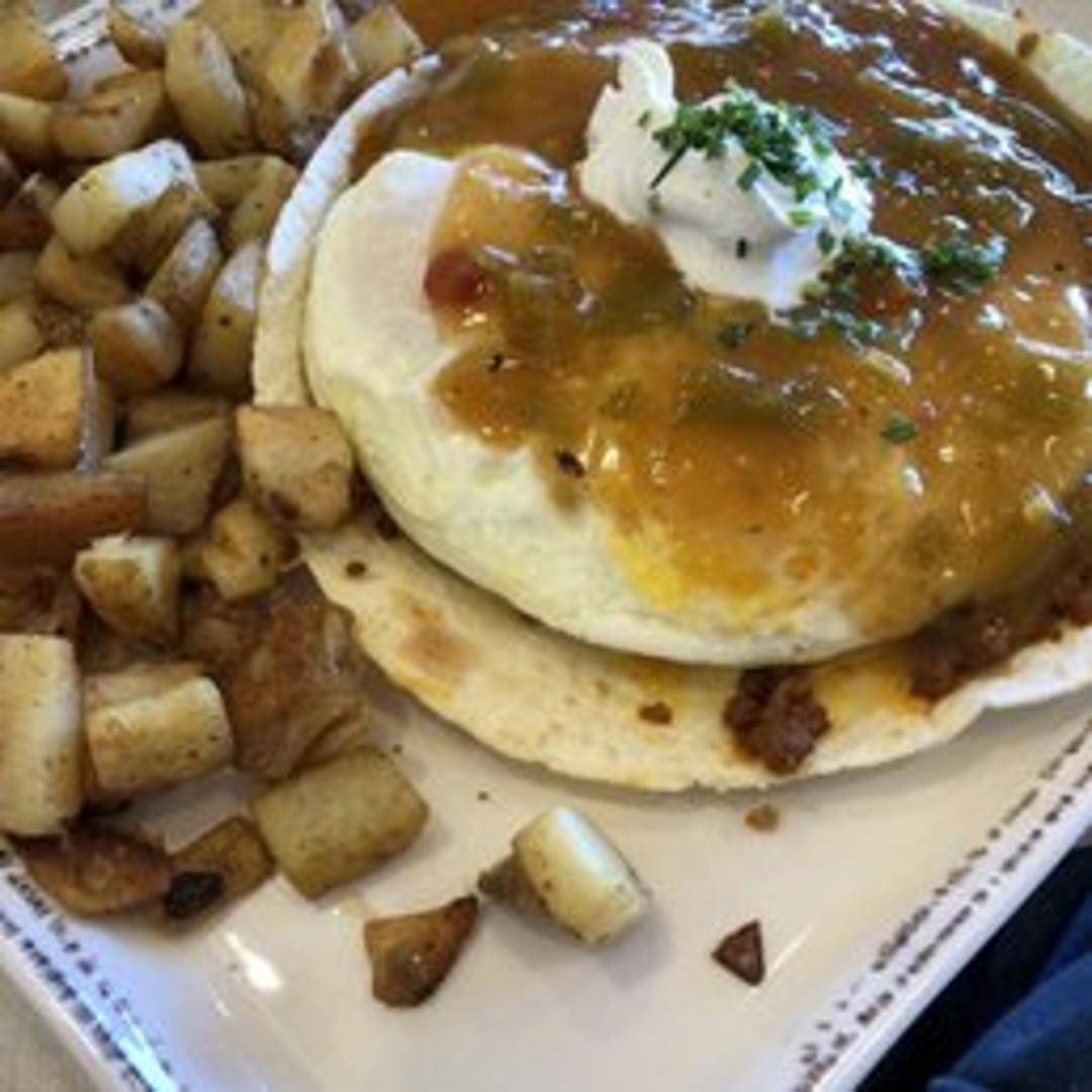 A savory stew or sauce made with green chilies. It is often served as a topping for breakfast dishes or as a side. Details depend on the specific recipe, such as mild, medium, or hot.