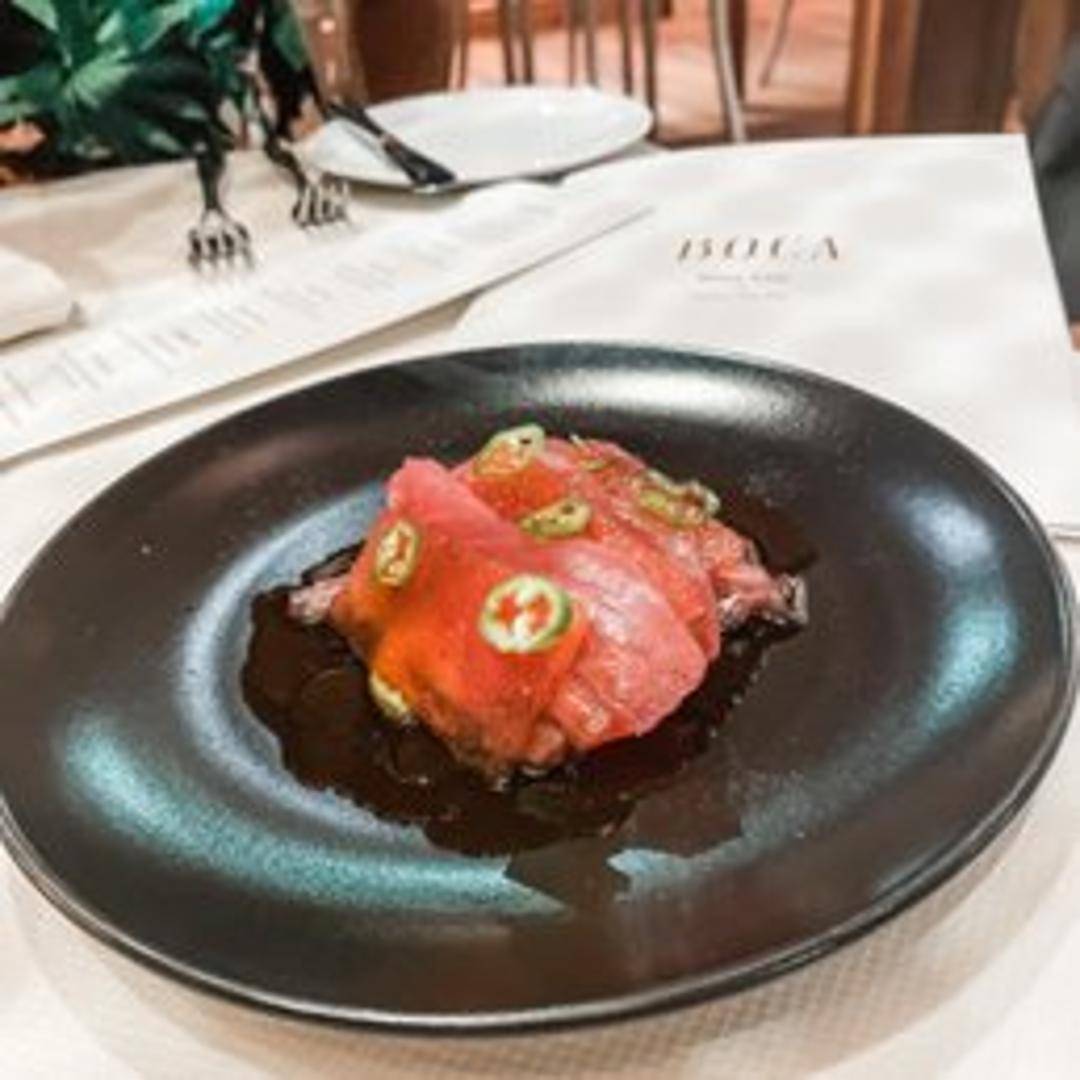 Experience the pristine freshness of our Blue Fin Tuna Crudo, featuring impeccably sliced, sushi-grade tuna. Delicately dressed with a vibrant citrus emulsion, premium extra virgin olive oil, and a sprinkle of Maldon sea salt, this dish highlights the exquisite quality of the fish with bright, clean flavors.