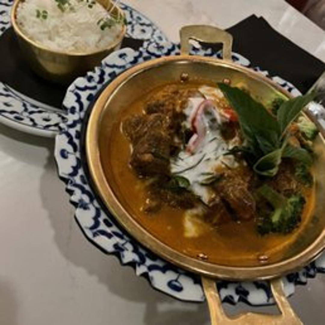 A vibrant and aromatic Thai curry known for its spicy and herbaceous flavors. Prepared with green curry paste, coconut milk, bamboo shoots, bell peppers, Thai basil, and your choice of protein (chicken, beef, pork, tofu, or vegetables). Served with steamed jasmine rice.