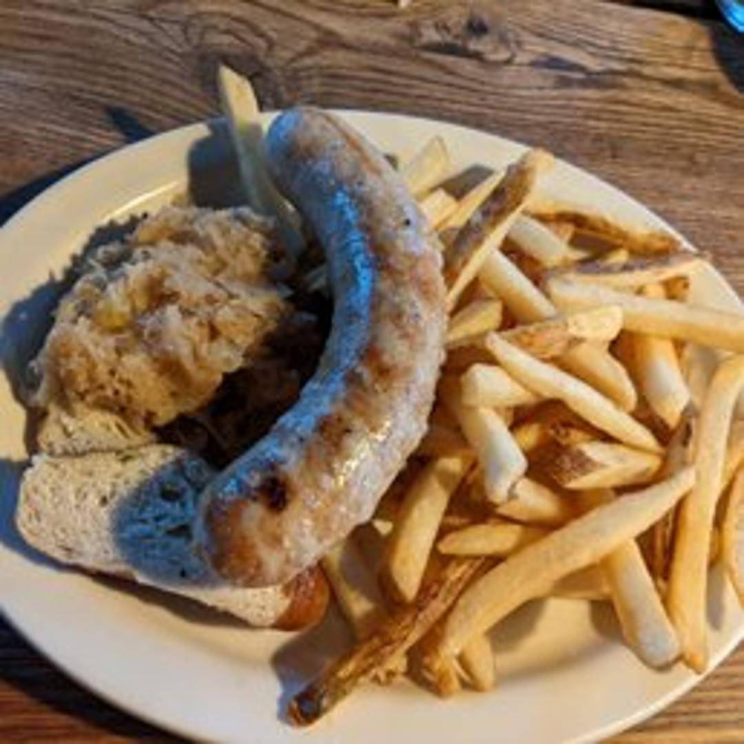 Traditional Bavarian white sausage made from veal and pork, seasoned with parsley, lemon, and spices. Served with sweet mustard and a pretzel.