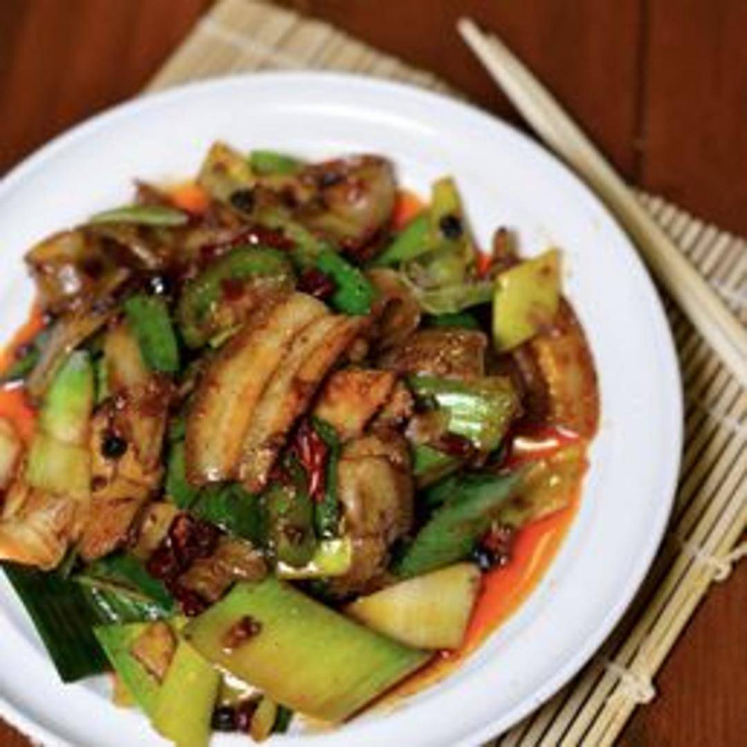 Slow-cooked pork belly, tender and flavorful, prepared with a rich and savory sauce.