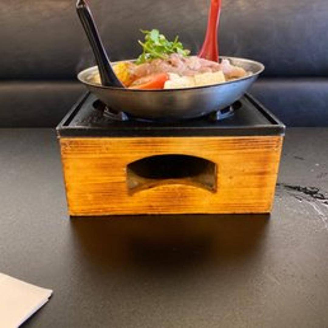 A signature Boiling Pots hot pot featuring a rich and flavorful broth simmered with a variety of premium ingredients. Typically includes a selection of meats (such as beef, lamb, and seafood), an assortment of fresh vegetables, tofu, noodles, and various specialty items like fish balls and wontons. The exact ingredients may vary, ensuring a unique and satisfying experience with each order.