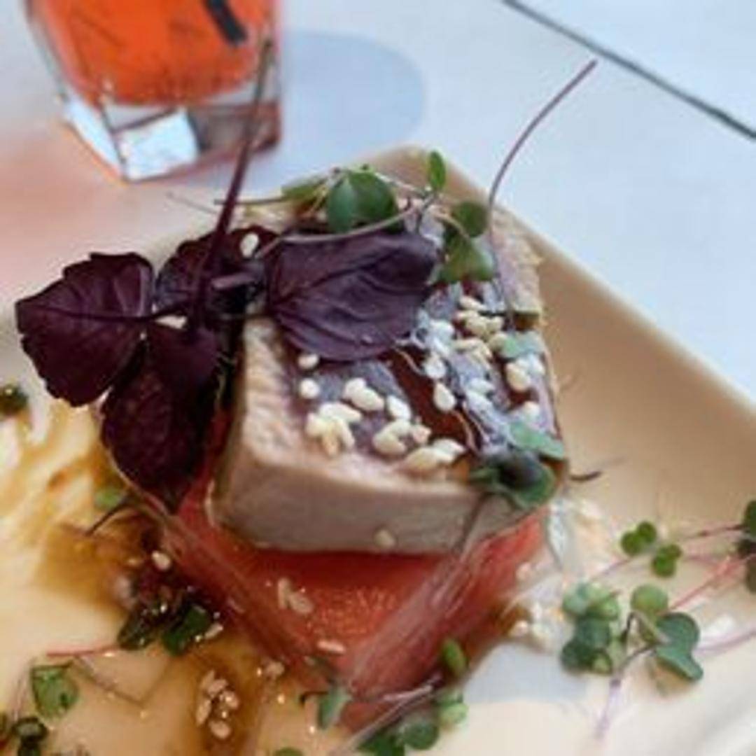 Sustainably sourced, sushi-grade tuna, expertly seared to rare perfection. Served with a vibrant ponzu sauce, pickled ginger, and a wasabi aioli. Garnished with sesame seeds and microgreens. May contain raw or undercooked ingredients.