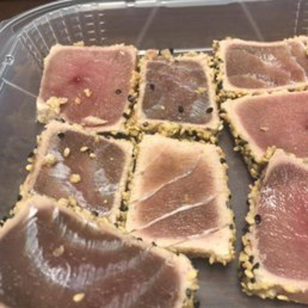 Exquisite, thinly sliced raw sushi-grade tuna, meticulously prepared and presented to highlight its pristine freshness, vibrant color, and smooth, buttery texture. Typically served simply with soy sauce, wasabi, and pickled ginger to enhance its delicate flavor.
