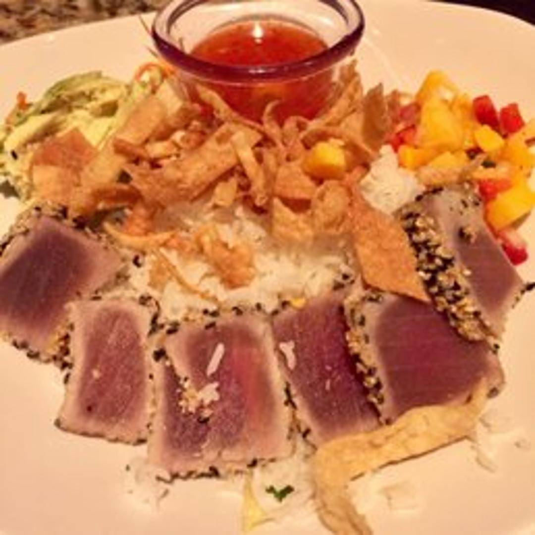 A vibrant and flavorful bowl featuring fresh, sushi-grade tuna cubes tossed in a piquant sauce, often accompanied by a base of perfectly cooked rice, crisp vegetables, and additional toppings like avocado, edamame, or scallions for a complete and satisfying meal.