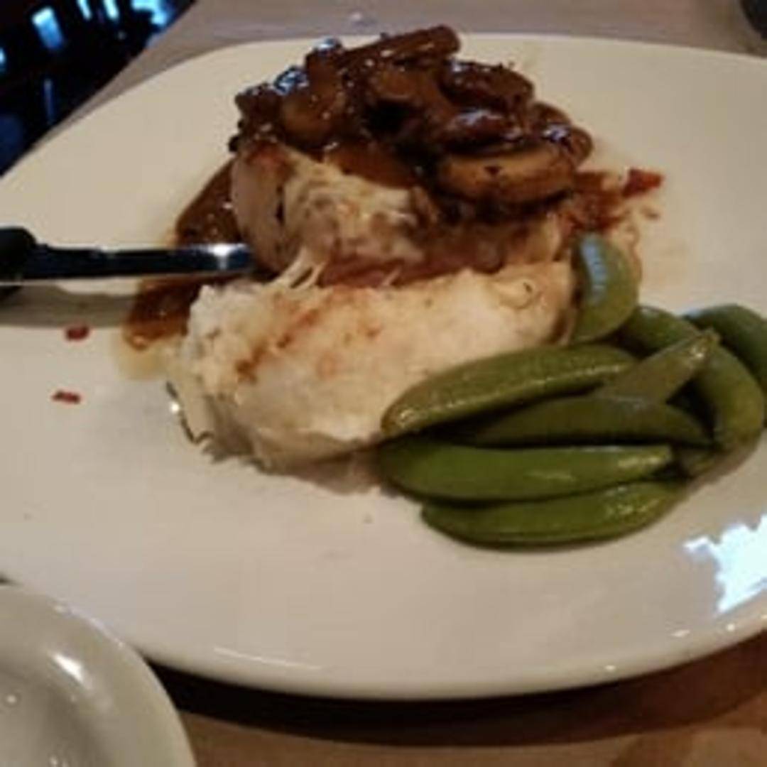 Savor a generously thick-cut, bone-in pork chop, expertly grilled and topped with melted fontina cheese. This savory entree is further enhanced with a flavorful mushroom marsala wine sauce, offering a harmonious blend of rich and earthy notes.
