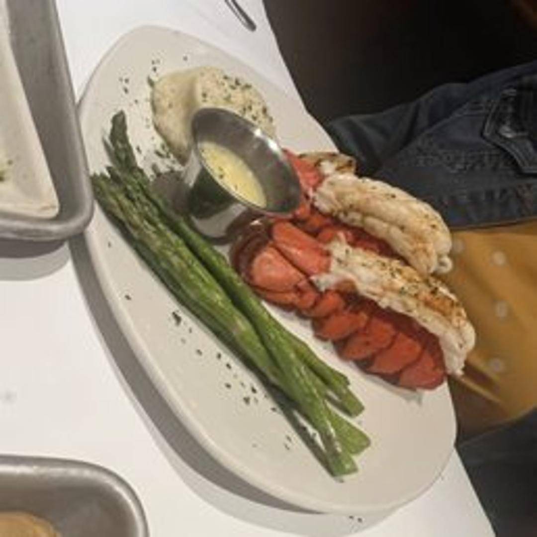 Two cold-water lobster tails, broiled and brushed with butter. Served with your choice of two fresh sides.