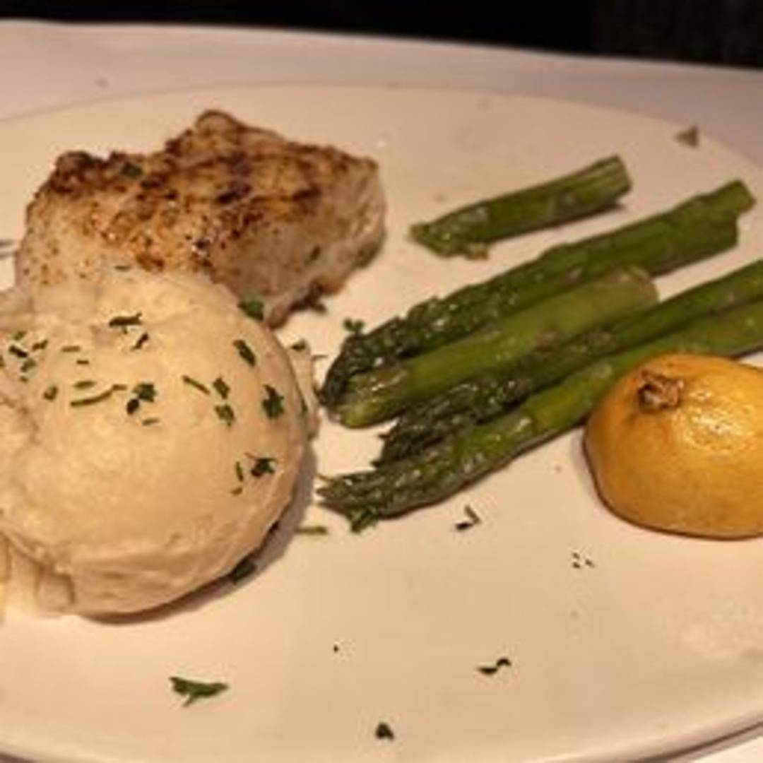 Moist, flaky Chilean Sea Bass, pan-seared or wood-grilled, often finished with a signature sauce like lemon butter or pan Asian glaze. Served with your choice of two signature sides.