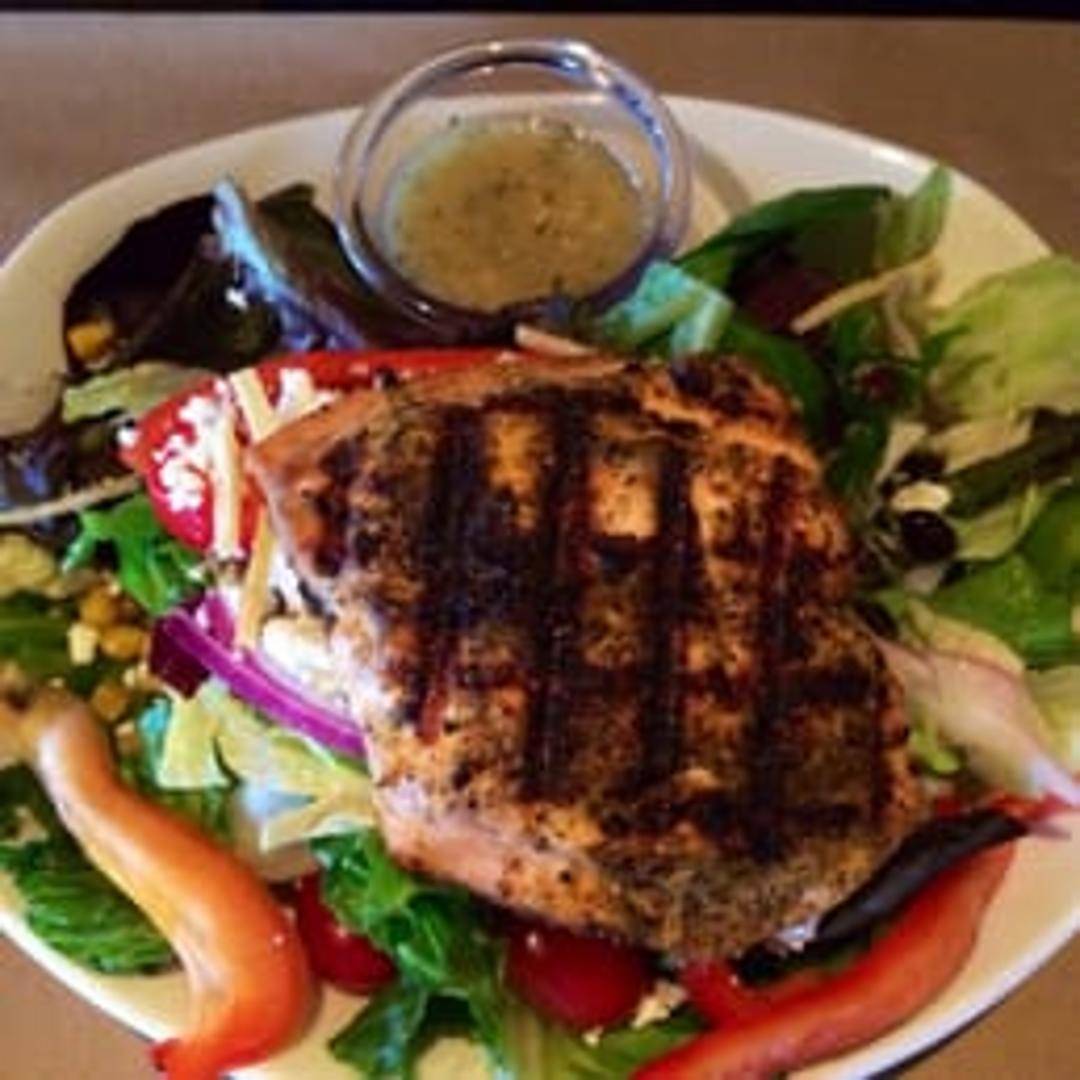 Serves up to 5. Includes grilled salmon, choice of two family-style sides, bread, and pesto.