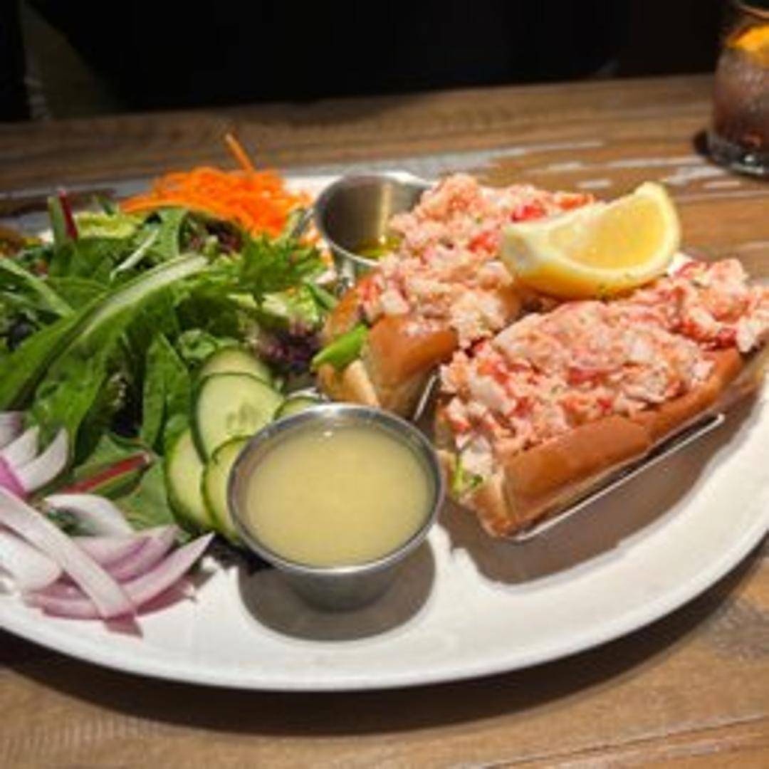 A classic New England-style sandwich featuring chunks of fresh lobster meat mixed with mayonnaise and celery, served in a toasted roll.